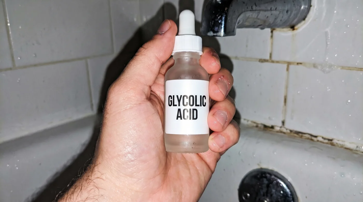 Lösningen är att börja lita på kemin istället för fysiken. Det är här en syra som glykolsyra (AHA) kliver in i bilden. Den fungerar inte genom att riva sönder strukturen, utan genom att i tysthet lösa upp de mikroskopiska bindningarna som håller fast de torra, döda hudcellerna. Istället för att slita av huden låter du den smälta bort, på samma sätt som strösocker tyst försvinner när det rörs ner i varmt vatten.